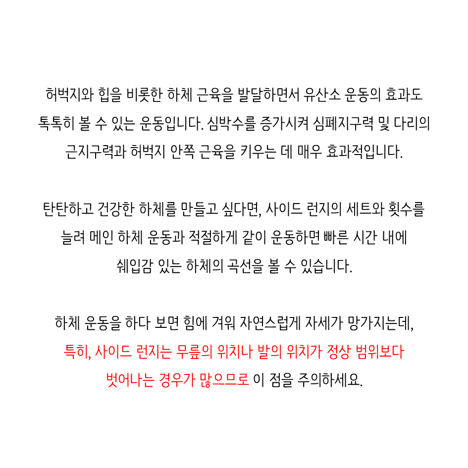 그렇다면, 올바른 사이드 런지 자세는 무엇일까요?